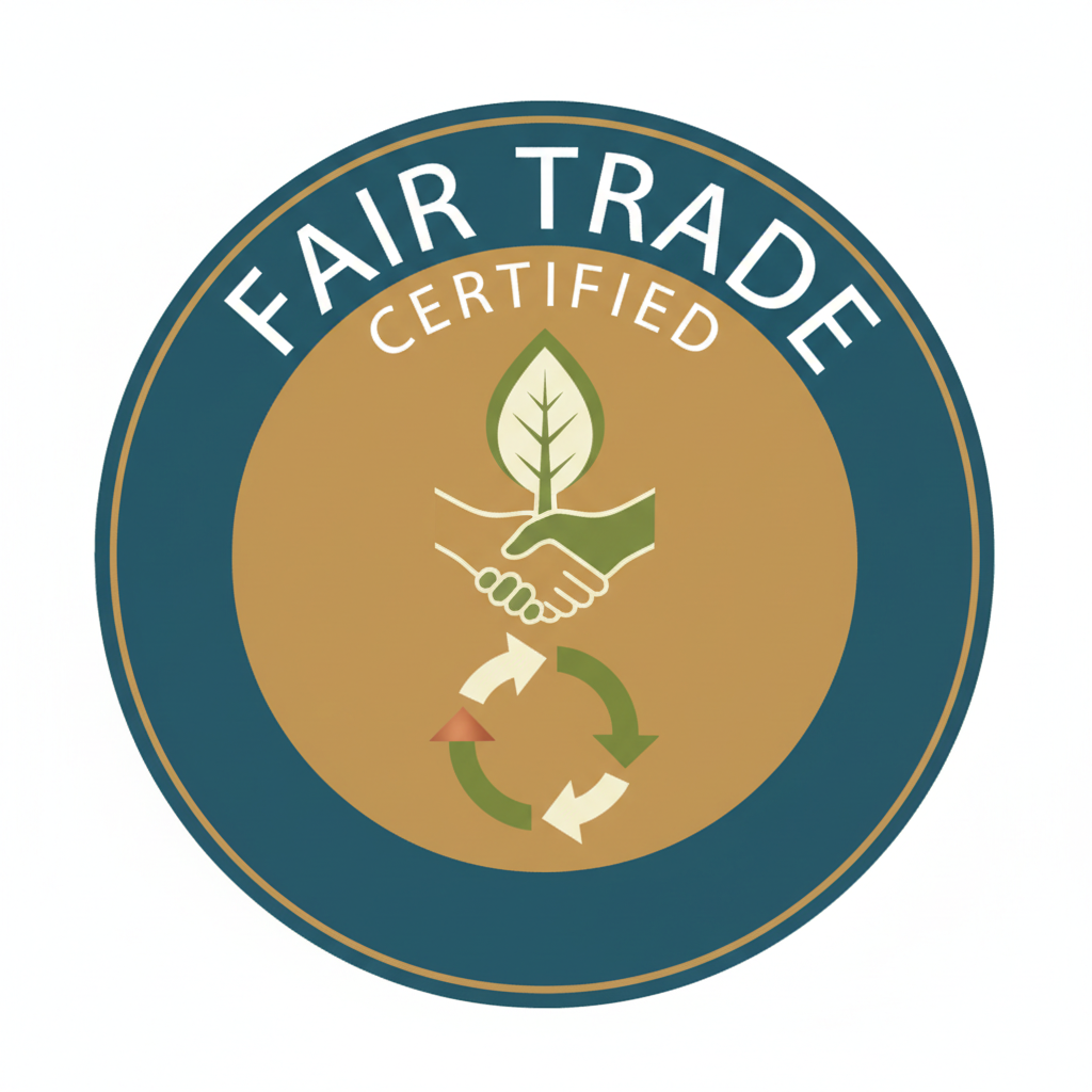 Fair trade certification ensuring ethical sourcing, fair wages, and sustainable farming practices for producers.