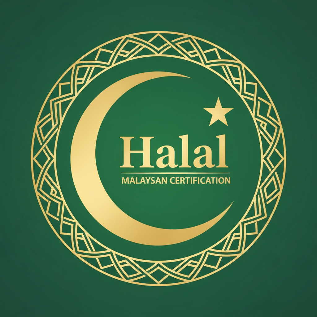 Halal certification confirming compliance with Islamic dietary laws for Middle Eastern and global Muslim markets.